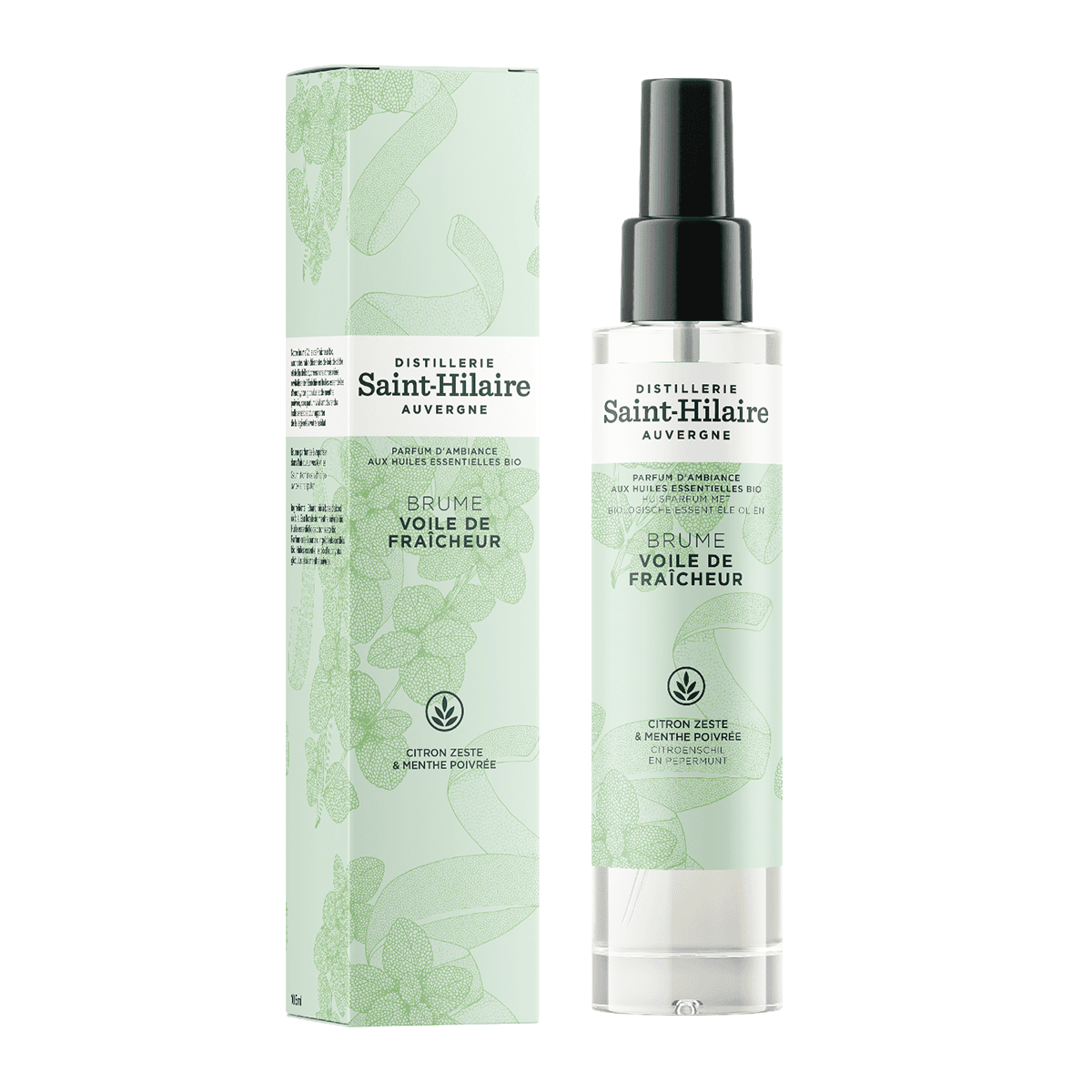 Apportez une sensation immédiate de pureté à votre intérieur avec cette brume parfumée aux huiles essentielles de Citron et Menthe bio, développée par la Distillerie Saint-Hilaire.