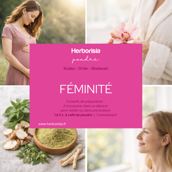 Notre synergie Féminité est un mélange de plantes en poudre soigneusement sélectionnées pour soutenir les femmes dans les grandes étapes de leur vie hormonale. En favorisant naturellement la production d’œstrogènes, cette synergie contribue à stimuler l’ovulation, soutenir la fertilité et raviver la libido, tout en apportant un véritable équilibre au bien-être féminin.