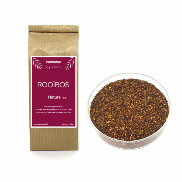 Dans notre herboristerie, nous vous proposons du Rooibos en vrac (en paquet de 100 g) cultivé dans le respect de l’agriculture biologique.