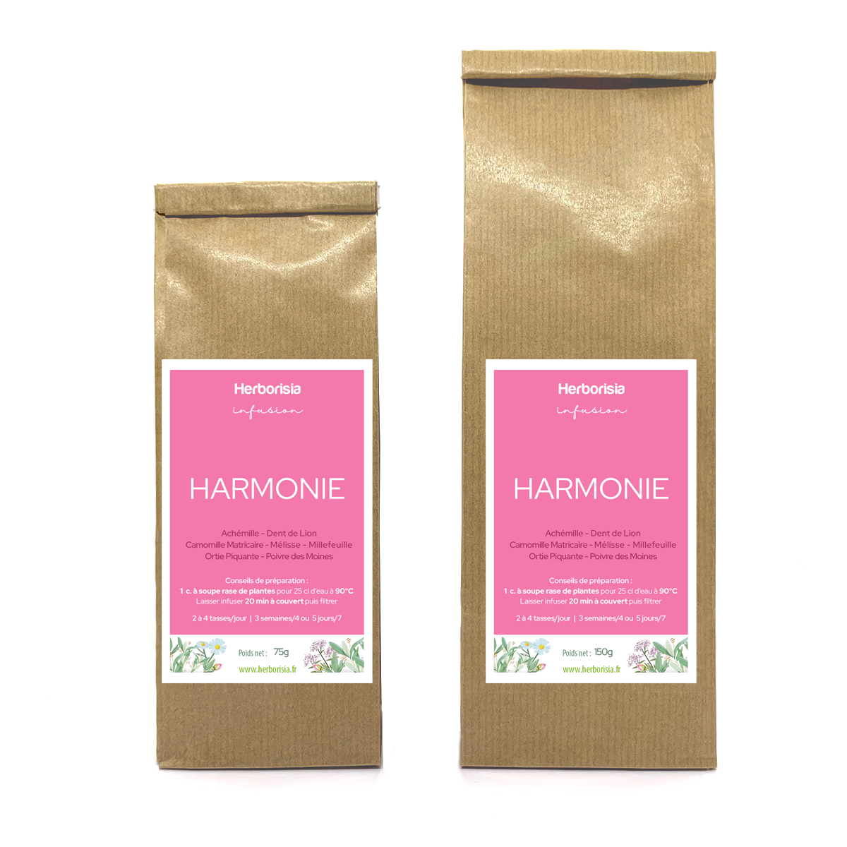 Notre tisane Harmonie est un mélange de plantes soigneusement sélectionnées pour vous accompagner lorsque vos êtes confrontée à des troubles gynécologiques liés à la féminité (endométriose, SOPK, syndromes prémenstruels, fibrome, préménopause). Elles ont été sélectionnées pour atténuer les désagréments qui y sont liés (douleurs, gonflements, irritabilité...)