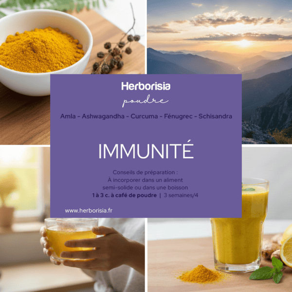 Notre synergie Immunité en version poudre est un mélange unique de plantes soigneusement sélectionnées pour booster et fortifier votre système immunitaire de manière naturelle. Composé d'ingrédients reconnus pour leurs propriétés stimulantes et antioxydantes, ce mélange contribue à protéger votre organisme des agressions extérieures et favorise une sensation de bien-être général.